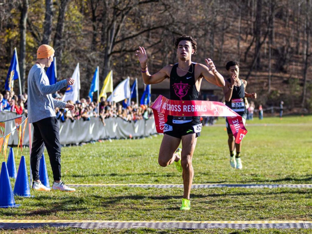 After taking first place finishes in the state and New England championships, the next opportunity to shine came at the Nike Cross Northeast Regionals in Wappingers Falls, N.Y., where SRA coach Chris Magill ’90 reported in a social media post: “Devan executed the race plan to perfection as he battled through the hills with the leaders and made his move in the final 1,000 meters to take the Nike Northeast Region crown in 15:34.” His performance there earned him a berth in the Nike Cross Nationals, and Devan is the first runner from Saints to qualify for the race in nearly 30 years.