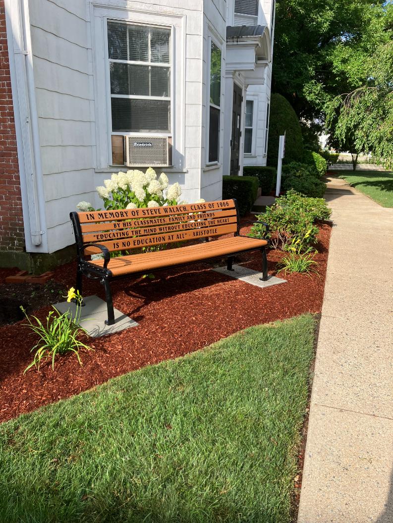A new commemorative bench was added to the west side of campus, courtesy of the Class of 1966, in addition to the family and friends of Steve Walach ’66. It is situated outside the White Building, where students can take a minute’s respite in the warmer months and enjoy the green space.